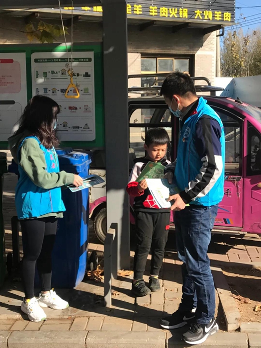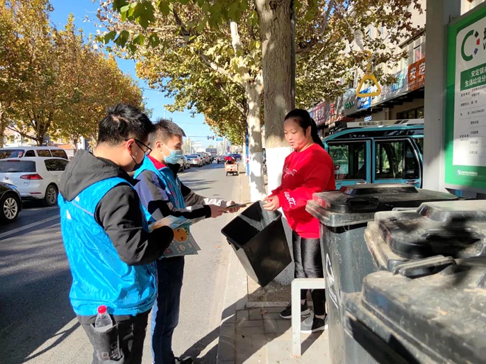 在活动中,团员青年们积极为前来投递垃圾的居民们进行垃圾分类知识讲解,并通过发放宣传册的形式传递了垃圾分类知识。